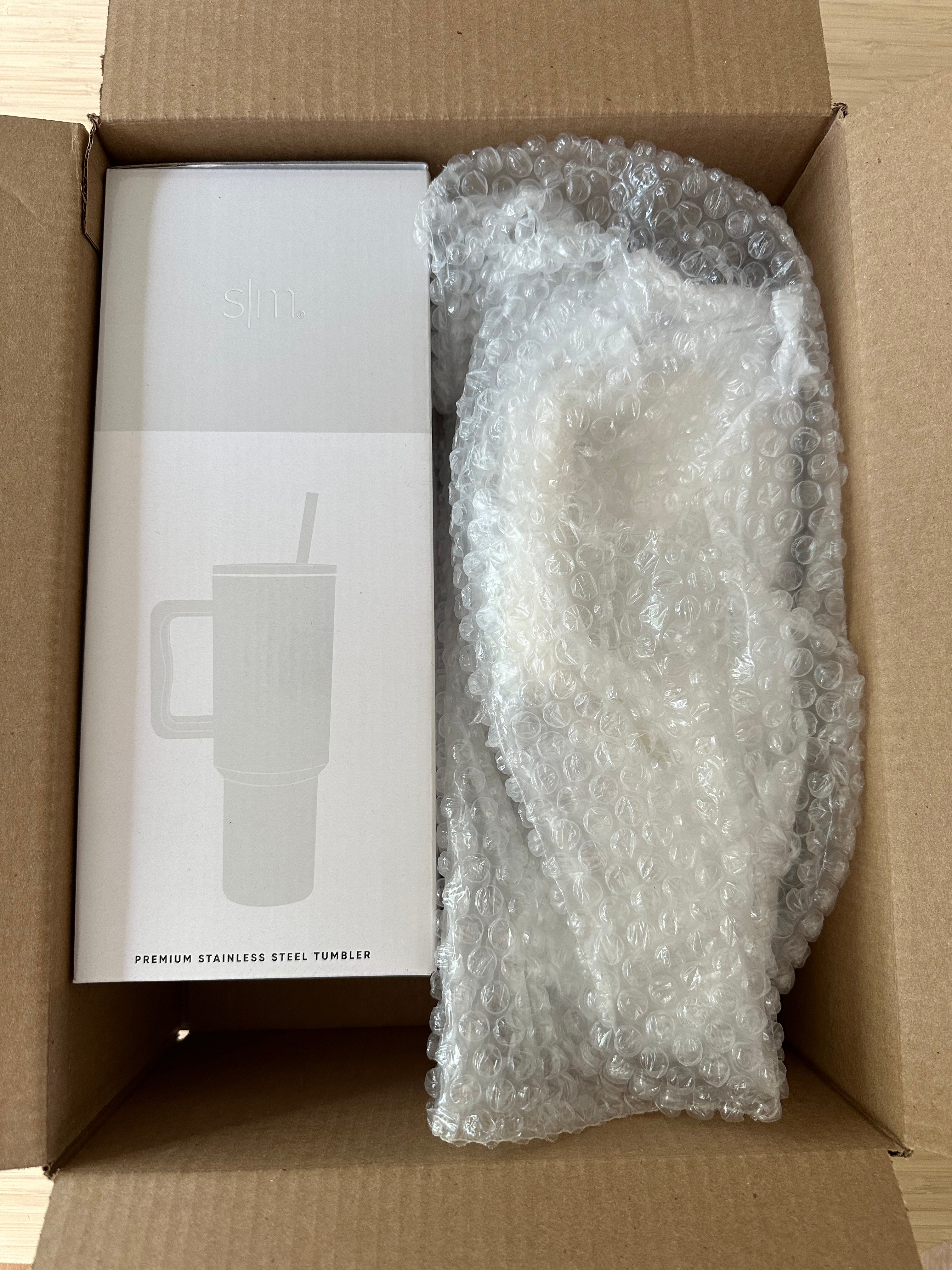Interestingly enough, the Stanley was packaged only wrapped in bubble wrap. The Simple Modern arrived in a nicely packaged box.